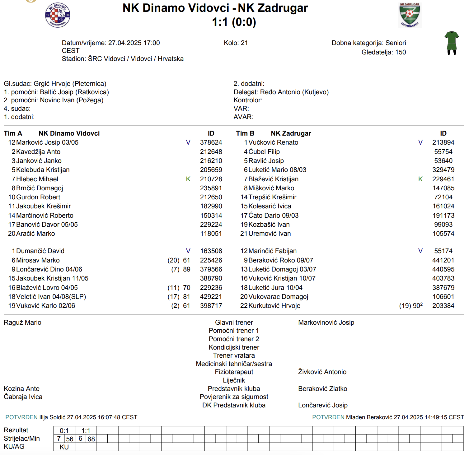 DINAMO(V) – ZADRUGAR(O) – 1:1