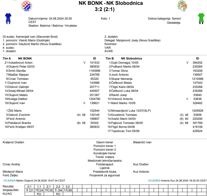 1 | 24.08.2024 20:00 | Bebrina | NK BONK – NK Slobodnica | 3:2 |