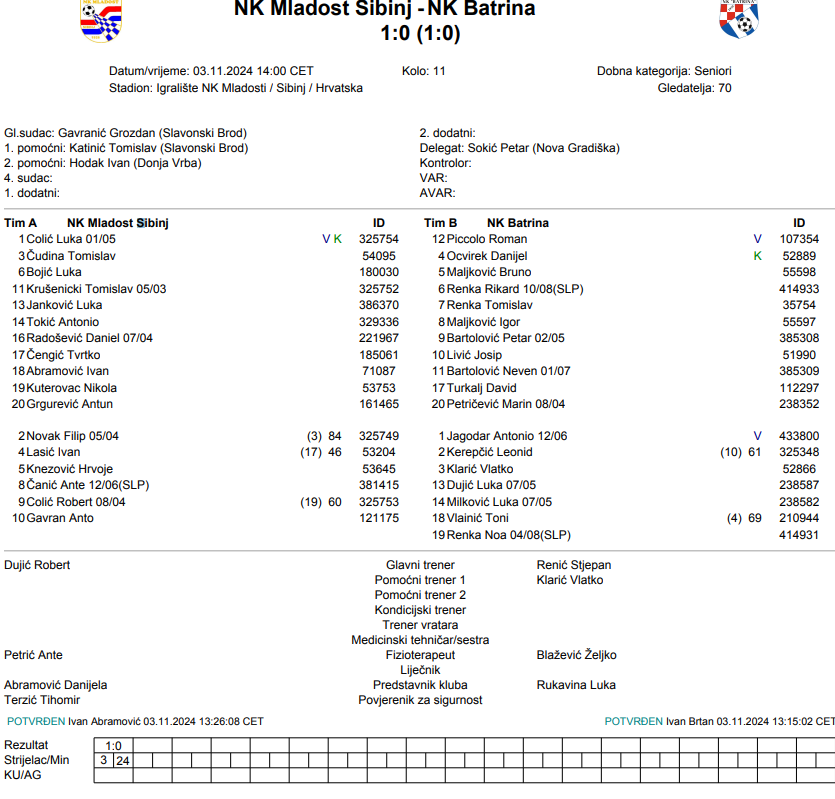 Fer i korektna utakmica u kojoj domaćini iskoristavaju nasu grešku i zabijaju pogodak. Mi smo stvorili nekoliko šansi no nažalost ne uspjevamo ugurati loptu u mrežu. Svi akteri za pohvalu, domaćinu sretno dalje. Mi se okrećemo novom tjednu i treninzima – Danijel Ocvirek Batrina.